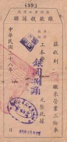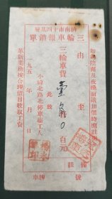 交通专题---民国税证---民国38年(1949)5月30日, 广州市公用局"三轮车牌执照"工本费缴款收据4993