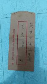 1982年7月7日信封:内蒙古土右旗革命委员会计划生育办公室-吴坝公社卫生院,粘贴明刀邮票1枚,8品【邮戳不清晰折角,折痕,背面书写参加工作年限字迹等,详看图片】