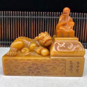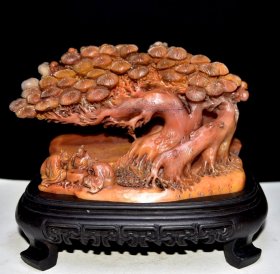 旧藏老货 老寿山石《摇钱树》摆件 原石原色纯手工雕刻 工艺精湛 形象逼真 皮壳老辣 包浆醇厚 篆刻家【牧甫】甲申年作5200️ 尺寸:18*12*13厘米 重量:1837克
