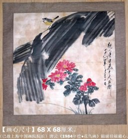 已故上海中国画院院长◆唐云《1984年绘●花鸟画》锦绫旧裱镜心◆近现代“海上画派”名人旧字画*