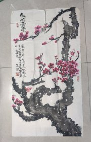 F 002 【处理商品,一律不还价】近现代著名书画家 中国美协会员 李建国 红梅图小中堂,有一条小撕伤, 但不少,画的好,低价100元