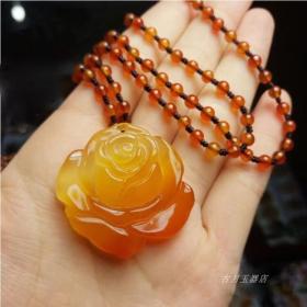 天然冰种俏色玉髓玫瑰花吊坠 男女款冰彩花开富贵玛瑙毛衣