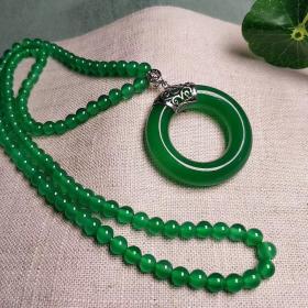 天然玛瑙玉髓平安牌镶嵌925银帝王绿鸡油黄吊坠圆珠毛衣链项链