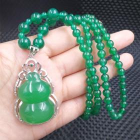 天然冰彩玛瑙玉髓葫芦福禄镶925银吊坠圆珠长项链毛衣链女