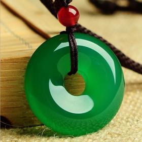 天然正品绿玛瑙玉髓平安扣吊坠玉坠男女款玛瑙玉髓平安扣挂件配饰
