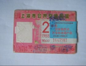 上海公交车月票,上有广告贴着