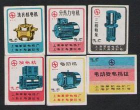 老火柴商标上海火柴厂电机广告贴6枚