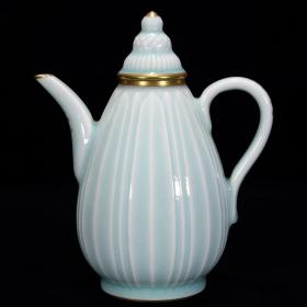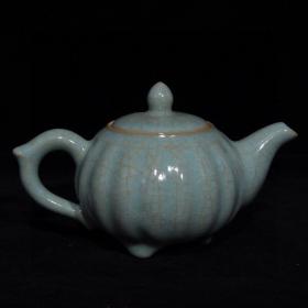 宋代汝窑天青釉瓜棱壶功夫茶壶井