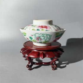 同治粉彩一品富贵瓜棱盖碗 盘碗杯碟壶罐瓶水洗水盂壁挂瓶盖碗炉