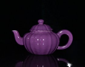 清雍正茄皮紫釉瓜棱壶