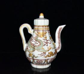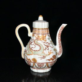 清雍正年酱油描金瓜棱壶18*15m