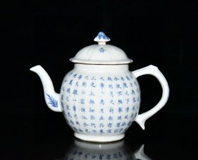清康熙青花赤壁赋瓜棱壶 15✘19.5