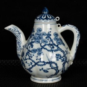 明宣德青花松竹梅纹瓜棱梨形壶 14厘米X14厘米X9厘米