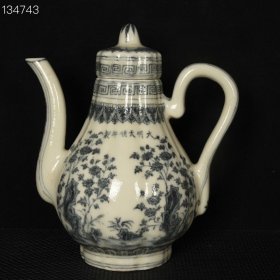 明天顺青花石头花卉纹瓜棱壶