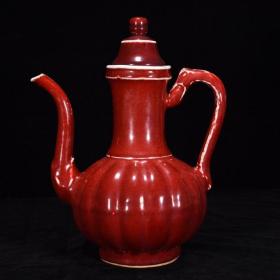 明宣德霁红釉瓜棱壶25*20厘米
