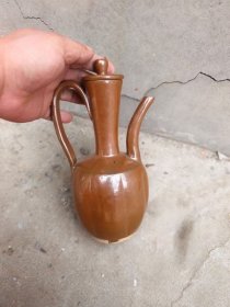 元明时期山西窑口紫金釉瓜棱壶 原盖完整尺寸见图