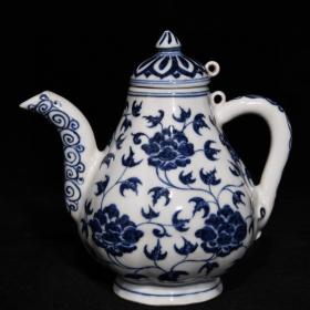 明宣德青花花卉纹瓜棱壶