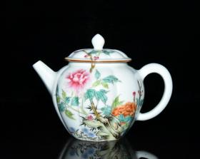 清代雍正粉彩花卉瓜棱壶
