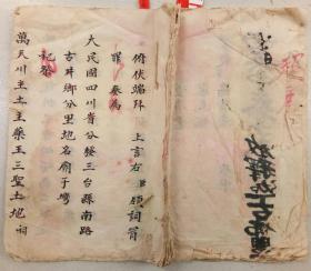 中华民国三十七年戊子岁一月十三日秉教奉行《伏以一泗天下 南瞻部州 秉 释迦如来遗教主行加持度亡科事仗释法旺领词和南顿百拜 今据大民国浙江省庆元县江竹乡…孝孙胡守一…》另有立卖契底稿胡…(手写本手稿)