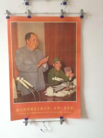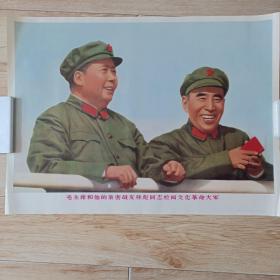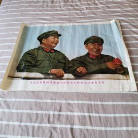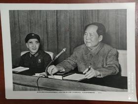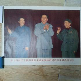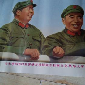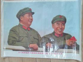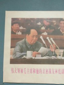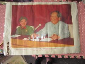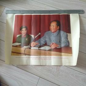 极其罕见的宣传画(我们的伟大领袖毛主席和他的亲密战友林彪副主席,在中国共产党第八届扩大的第十二次中央委员会全会上。)毛主席正在作极其重要的讲话 ,为主图。下面有毛主席语录,2开宣传画,包老包真