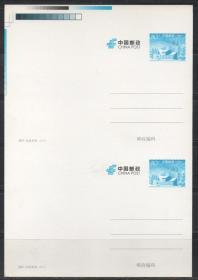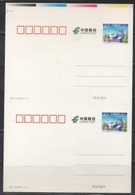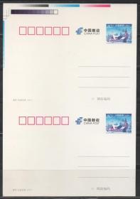 中国邮政邮资明信片,2006年信达天下双联,裁切线 色标,代售