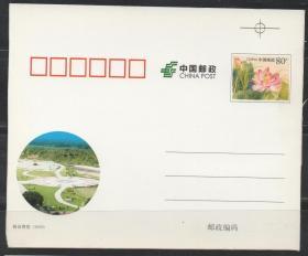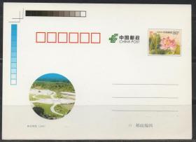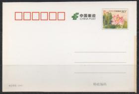 中国邮政邮资明信片,2009年映日荷花裁切线 色标,水生花卉