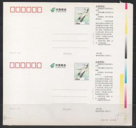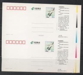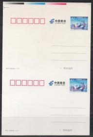 中国邮政邮资明信片,2006年信达天下双联,裁切线、色标,代售