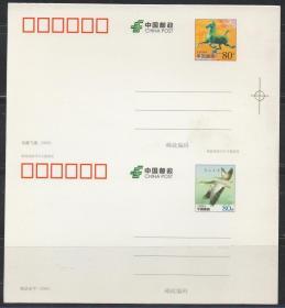 中国邮政邮资明信片,2009年马踏飞燕信达天下双联,裁切线,代售