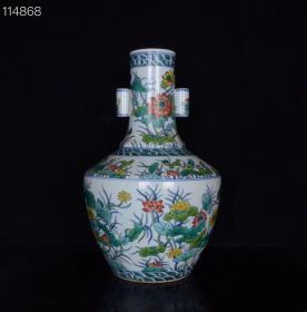 清乾隆斗彩荷花纹贯耳瓶;