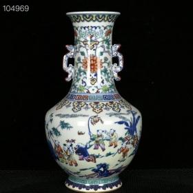 清乾隆斗彩婴戏纹双耳瓶