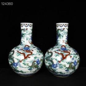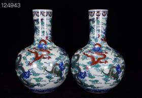 清代乾隆斗彩九龙赏瓶一对