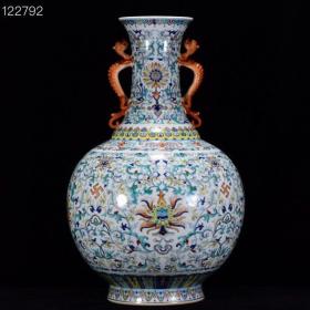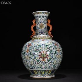 清乾隆斗彩万福庆寿螭龙耳瓶