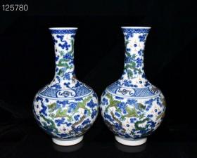 清乾隆青花斗彩龙纹缠枝连纹天球瓶