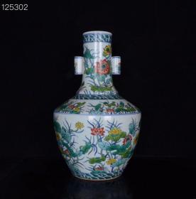 清乾隆斗彩鲤鱼跳龙门纹双耳扁瓶,33×26×14,