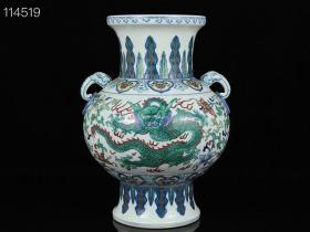 清乾隆斗彩龙纹象耳尊