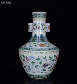 清乾隆年斗彩缠枝莲纹双耳瓶
