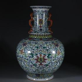 清乾隆斗彩缠枝八宝纹兽耳瓶 尺寸:53×41厘米 价格13600