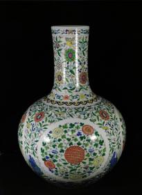 旧藏 清乾隆青花斗彩八宝花卉纹大天球瓶