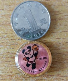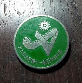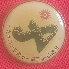 一九九〇年第十一届亚洲运动会 纪念章一枚 。直径 2cm.