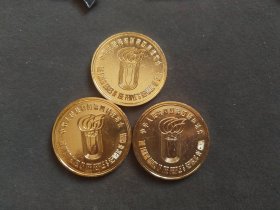 1989年沈阳造币厂“第二届青少年运动会”本铜齿边纪念章三枚1套,原封未拆