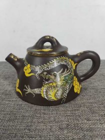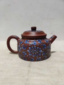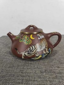 1010_民间收到,民藏,画彩“石飘”老紫砂壶一把,包浆醇厚,保存完整,十分难得收藏的佳品。