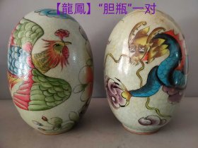 1029_民间收到,清代画彩【龍鳳胆瓶】一对,有冰裂纹,保存完整,值得收藏。