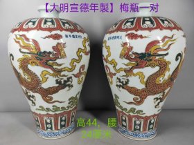 711_民间收到,民藏【大明宣德年製】,“龍鳳”梅瓶一对,画彩漂亮,釉色柔和,保存完整,值得收藏。