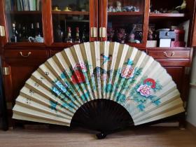失踪几个月的老画终于找到了!这是真正意义上的扇面画,富贵牡丹,白头偕老。喜庆的日子不二之选,既是艺术又是藏品。 【尺寸】:扇面最长段180厘米,扇面高99 ,玉竹扇骨,精美华丽,作品是已装裱好的成扇。 适合收藏和展示。历经半个多世纪的沧桑,仍然风采依旧。 作者介绍:作品为前期旧作,其它信息不祥,不敢胡乱杜撰,这幅扇面画,是老夫十分欣赏的作品,是不可多得的民间艺术。不议价,不虚价,纯属朋友圈交流。