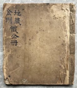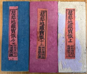 W43,孔网孤本,少见四川宗教古籍,清同治4年四川泸州蓝田场宝珠山精写刻本:地藏血湖报恩宝忏,原装大开本线装3册上中下卷全,写刻精良,封皮有印章一枚,除一册上端有些破损不伤字外,品不错。