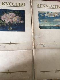 美术 1954创刊号 加1954年.12全1955年全12期全1956年全12全第6期缺前封1957年全12期缺第一期共11本1958年1到9期共9本1959年第3期 共57本合售