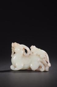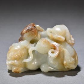 清代 和田玉籽料双兽摆件。