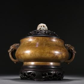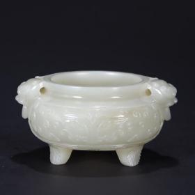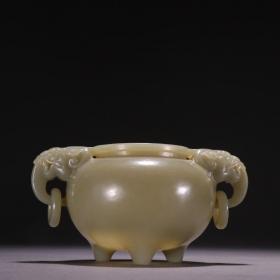 清代 和田玉籽料双兽耳香炉。