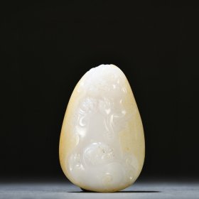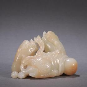 清 和田玉籽料双兽戏球摆件