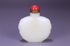 清代 和田白玉双兽耳鼻烟壶,